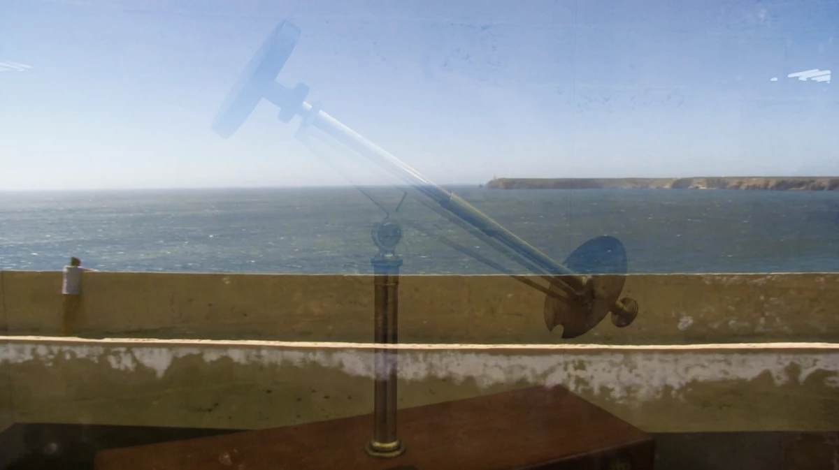 In the video ET (Le dernier dialogue possible), two characters – “space” (male voice) and “time” (female voice) – ponder their own existence and enter into a long dialogue that could well be the last. They discuss invisible phenomena, imperceptible forces that determine the degradation of the human condition. They also puzzle over phenomena and instruments that have served to measure time and map space and the earth’s rotation; instruments/inventions such as Foucault’s pendulum and the mysterious remains of the giant wind compass, 43 meters in diameter, that lies within the Sagres Fortress, in Portugal.